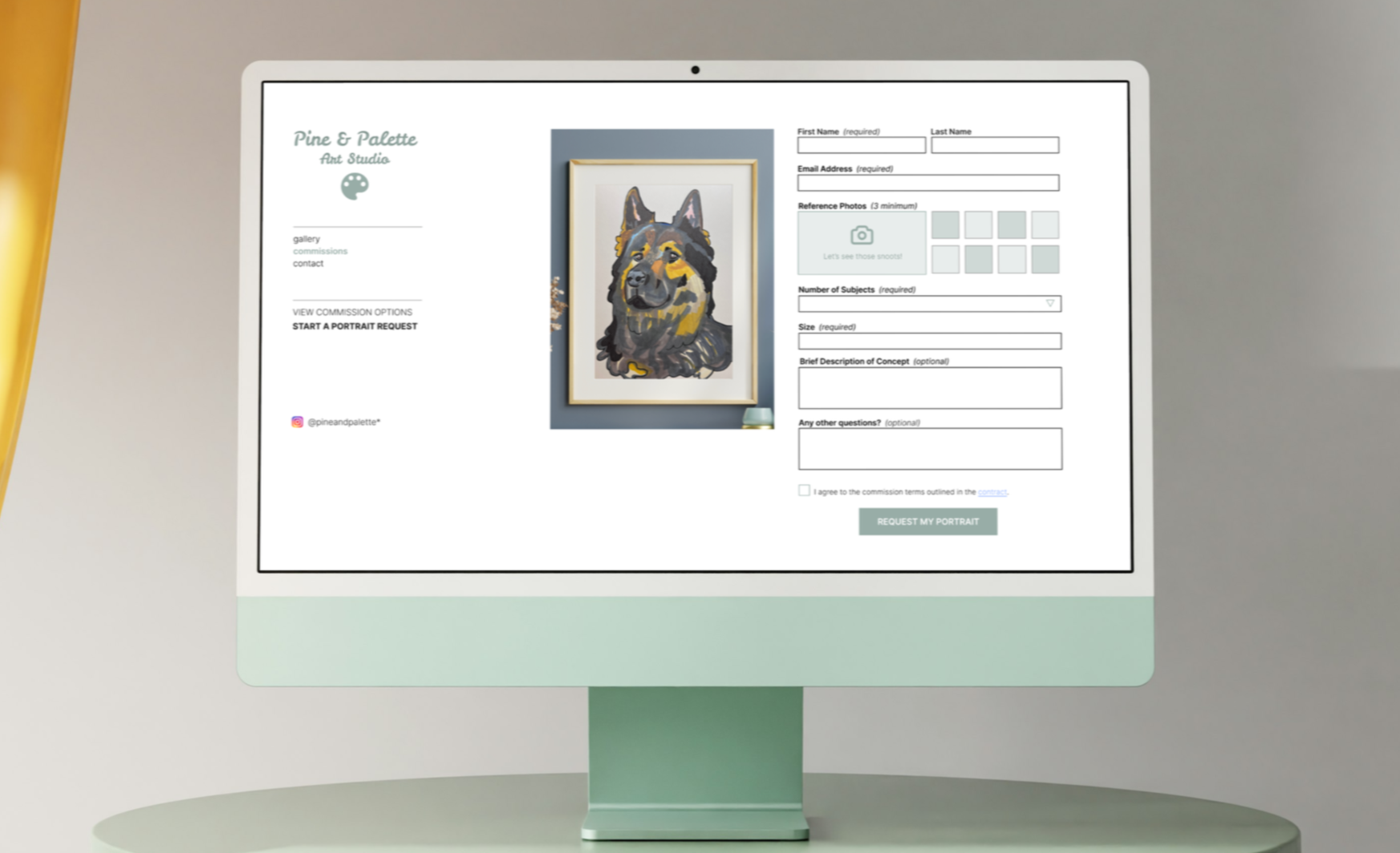 Pine & Palette is a fictional art studio commission portal designed as a solo UX/UI project. The goal was to create a calm, approachable experience for users looking to commission custom pet portraits. I focused on clear pricing, a guided request flow, and visual consistency that reflects the artist’s brand and tone. This project explores how thoughtful UX can support creative businesses and improve client experience.